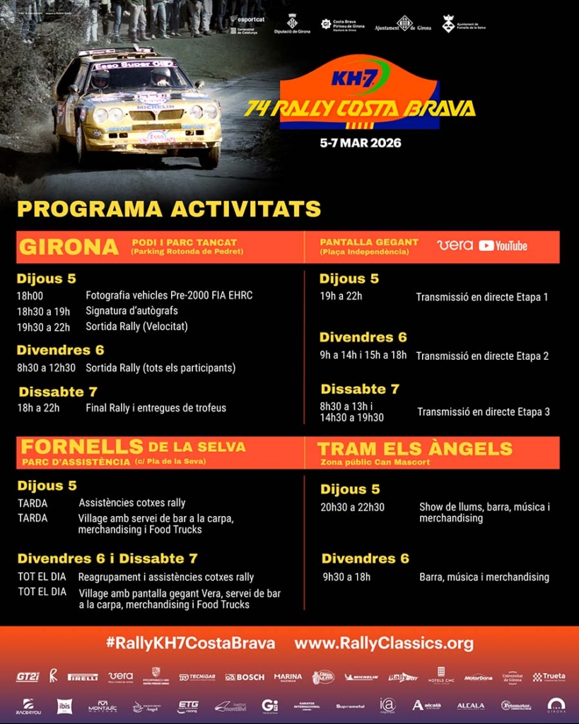 - La festa esportiva es complementa més que mai amb un ampli programa d’activitats paral·leles a Girona, al parc d’assistència de Fornells de la Selva i als trams mítics del ral·li.