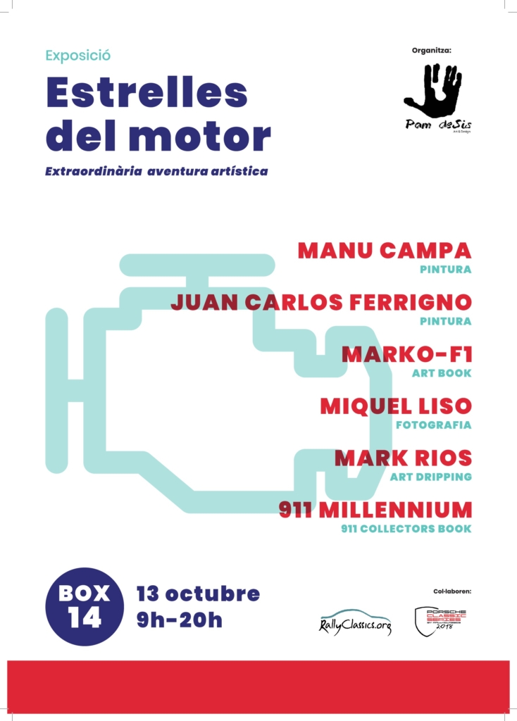 Pam deSis http://www.pamdesis.com formarà part de les activitats que trobarem a #LaGranFinal de les #PorscheClassicSeries aquest dissabte 13 al Circuit. Amb l’exposició titulada “Estrelles del motor – Extraordinària aventura artística” situada al BOX 14, podreu gaudir durant tot el dia de les obres d’artistes del món del motor: