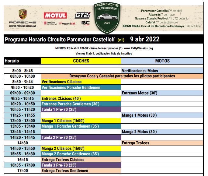 Las inscripciones ya están abiertas para la primera prueba del año, el sábado 9 de abril en Parcmotor Castellolí. Será un día muy especial, ya que volveremos a unir Porsche Classic Series, MotoClassic Series, Porsche Gentlemen y las Tandas Pre-70 para coches históricos.