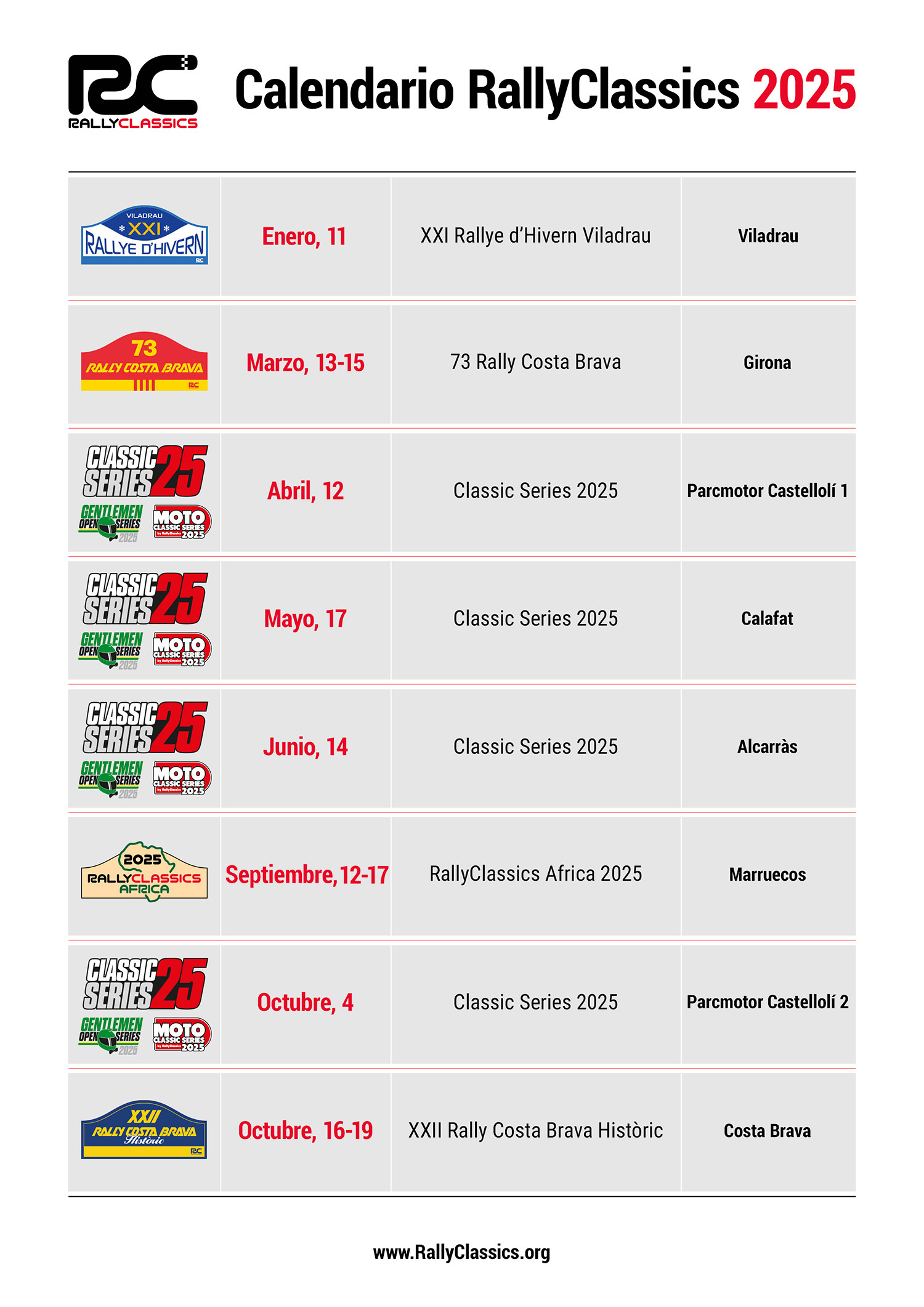 - El briefing serà escrit i es podrà consultar al web de RallyClassics, així com les classificacions a temps real.